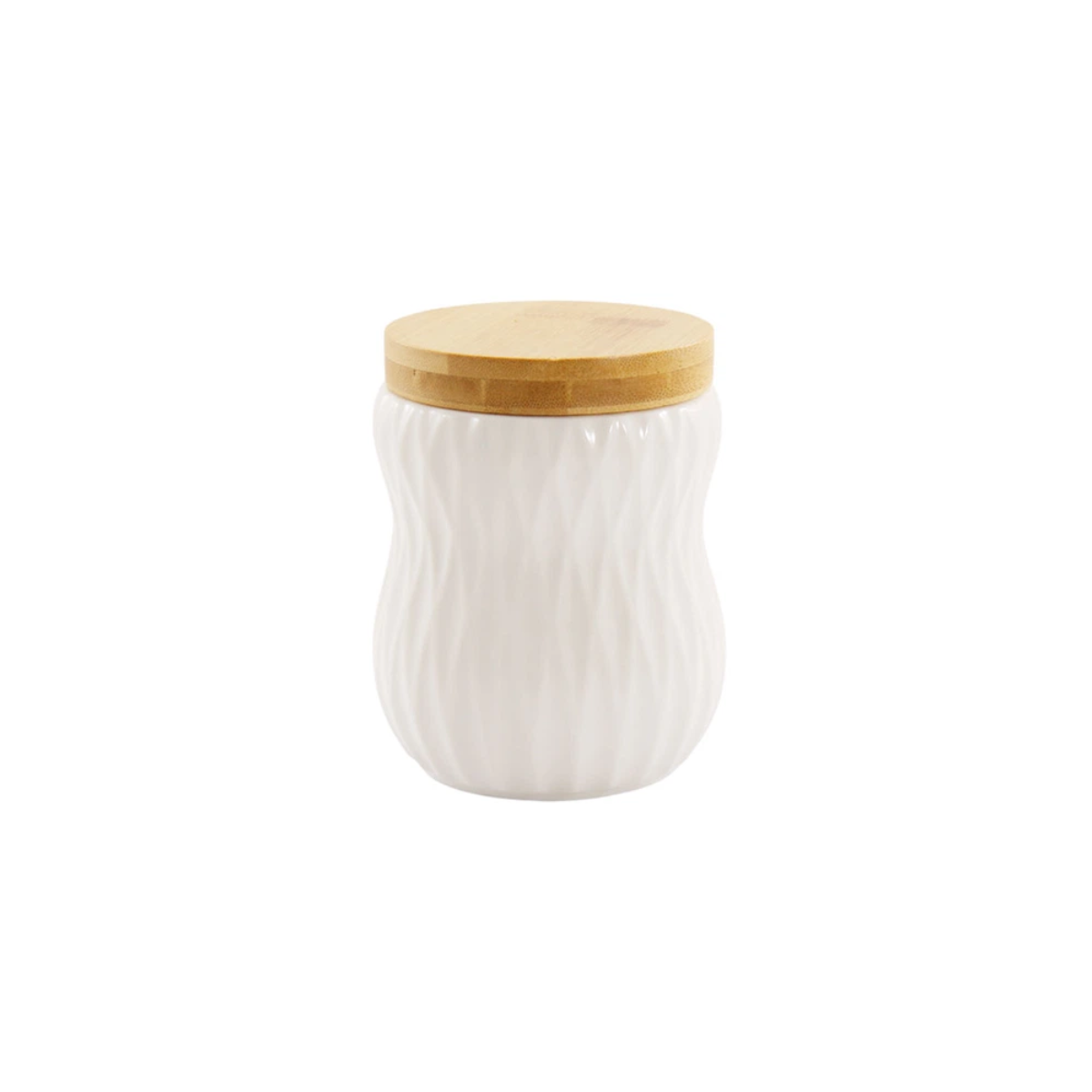 Банка PJ3801-M1 об’ємом 600 мл — це стильна та практична ємність для зберігання сипучих продуктів. Виріб виготовлений із міцної кераміки (або порцеляни залежно від партії) та оснащений дерев’яною кришкою з ущільнювачем, який допомагає зберігати свіжість продуктів і захищає їх від вологи та сторонніх запахів.