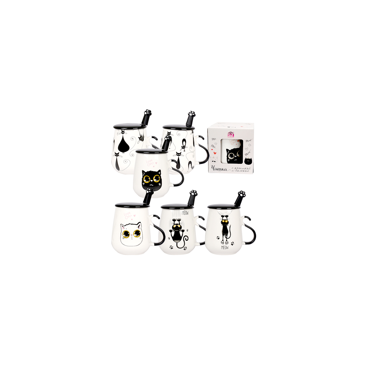 20628 Чашка порцелянова 440 мл з ложкою та кришкою Кішки S&T