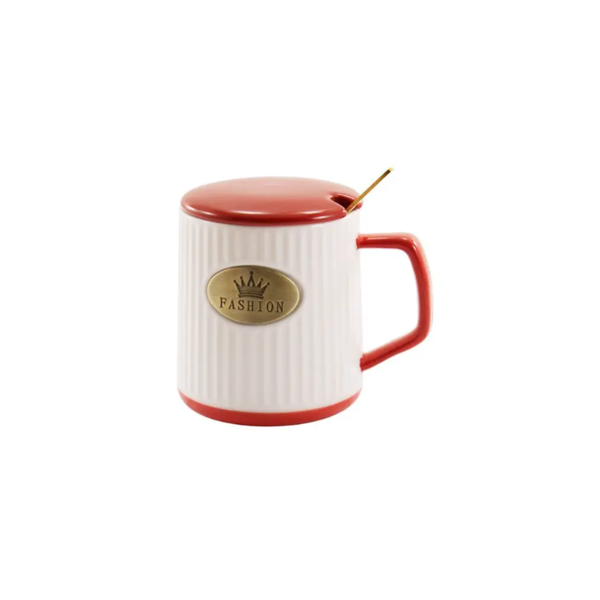 1147 Кухоль порцеляновий 420мл з кришкою Fashion White кол.кор. Interos