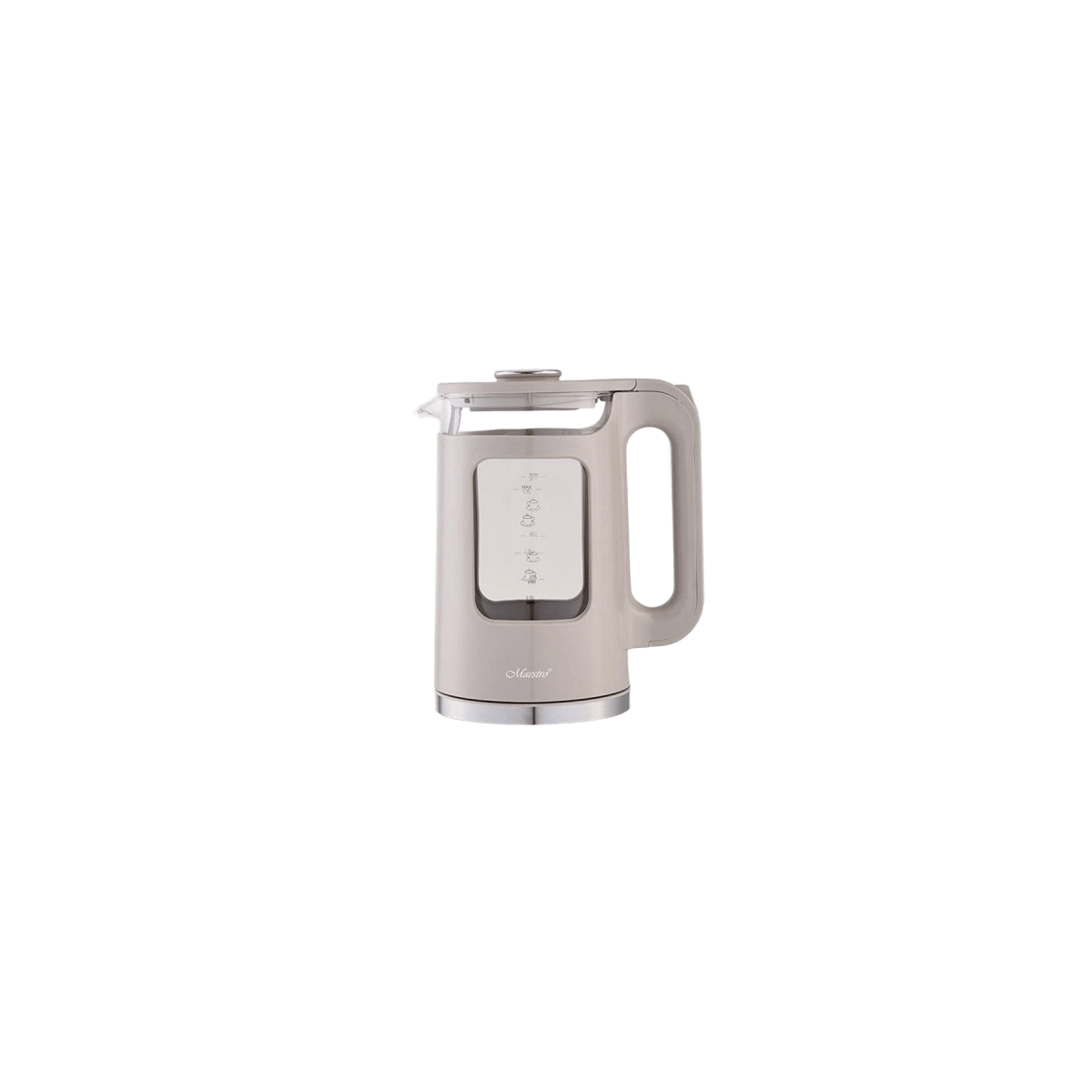 Електрочайник MR-065 об’ємом 1,7 л поєднує сучасний дизайн і надійну роботу. Корпус із термостійкого скла забезпечує довговічність і легкість у догляді, а прихований нагрівальний елемент захищений від накипу. Потужність 1850–2200 Вт дозволяє швидко закип’ятити воду.