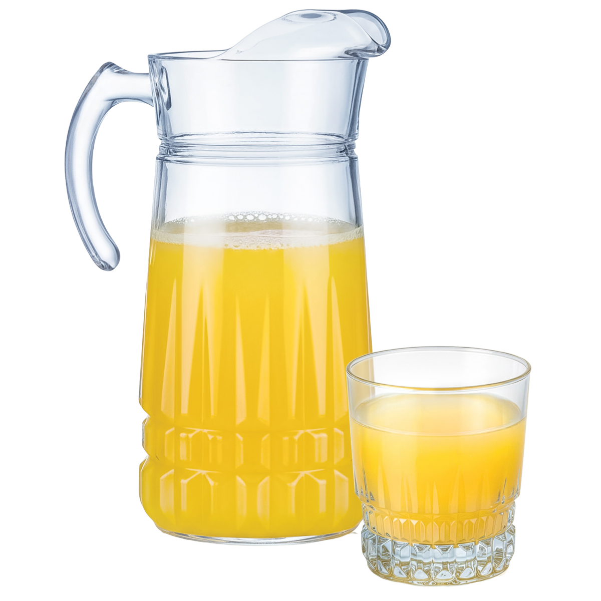 Глечик має зручну ручку та носик із функцією «стоп-крапля», що забезпечує акуратне наливання без проливання. Склянки мають потовщене дно та зручну форму для комфортного використання.