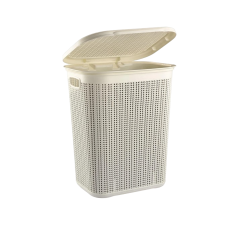 Місткий кошик для білизни виготовлений з гіпоалергенного матеріалу - поліпропілен Турецького виробництва. Об'єм кошика становить 50 л. . Висока міцність матеріалу до механічних і хімічних впливів. Відмінно підійде для сучасного інтер'єру оскільки зовнішній корпус виконаний у вигляді В'ЯЗКА. Має отвори завдяки чому по всьому кошику постійна циркуляція повітря. Використовується для зберігання чистої білизни або брудної, вологої білизни тощо. Відповідає міжнародному стандарту якості ISO 9001. Термін придатності - необмежений.