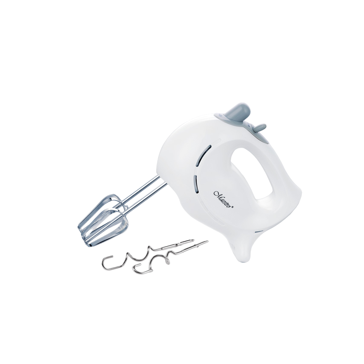 Міксер Maestro MR-502-GREY потужністю 300 Вт має 7 режимів швидкості, в комплекті поставляються 2 вінчики для збивання крему і яєць і 2 насадки для крутого тіста.