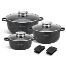 Готувати вечерю для всієї родини з цим набором із мармуровим покриттям одне задоволення. У такому посуді їжа не прилипає і не пригорає, готується рівномірно і в ній максимально зберігаються всі корисні речовини, натуральний смак і аромат.