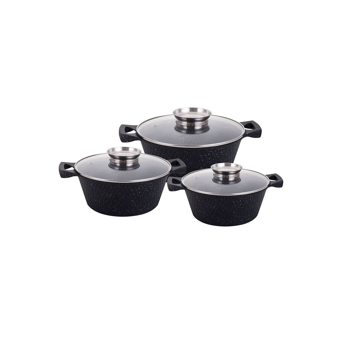 YS80CS-B Набір каструль 3-пр. 2,0/3,6/5,6л антипр.покриття скл.кришка індукція Чорний