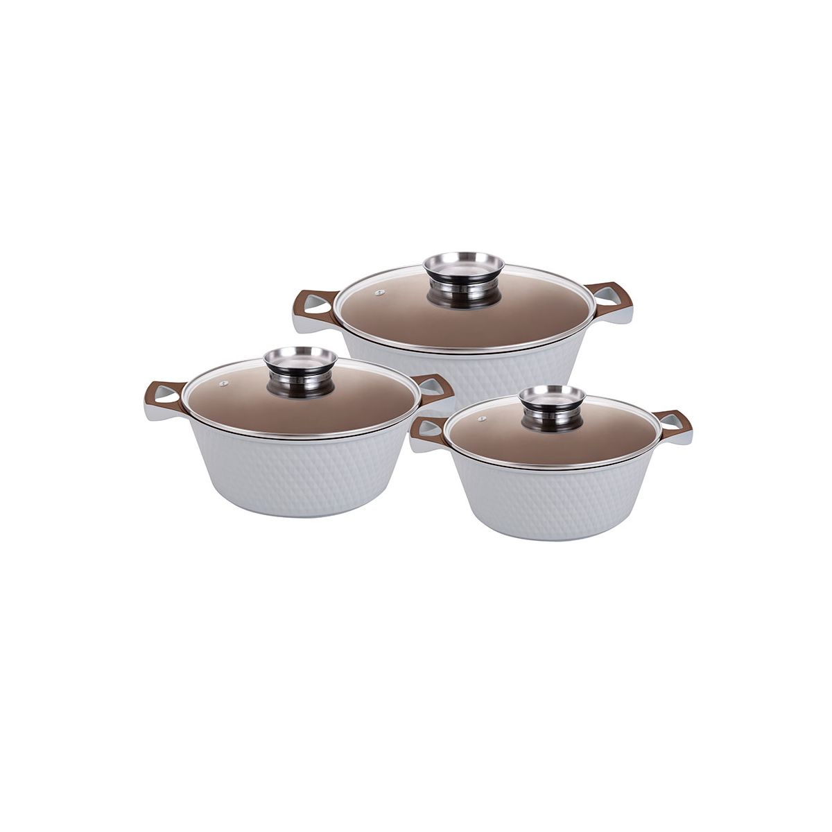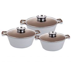 YS80CS-I Набір каструль 3-пр. 2,0/3,6/5,6л антипр.покриття скл.кришка індукція Білий