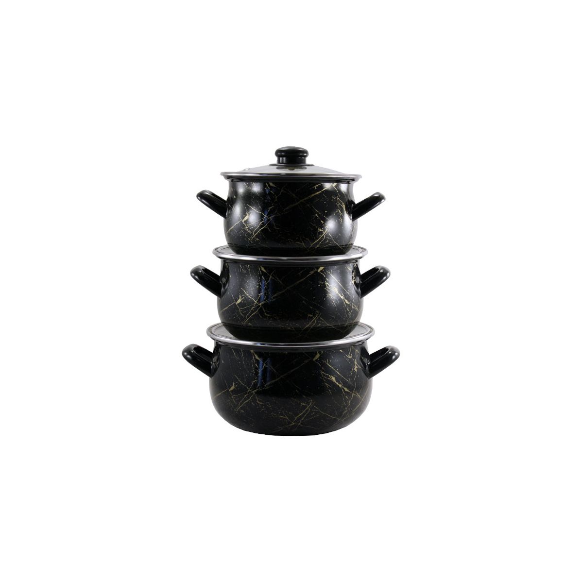 700 A Набір каструль 3-пр. скл/кр. Чорний Мармур