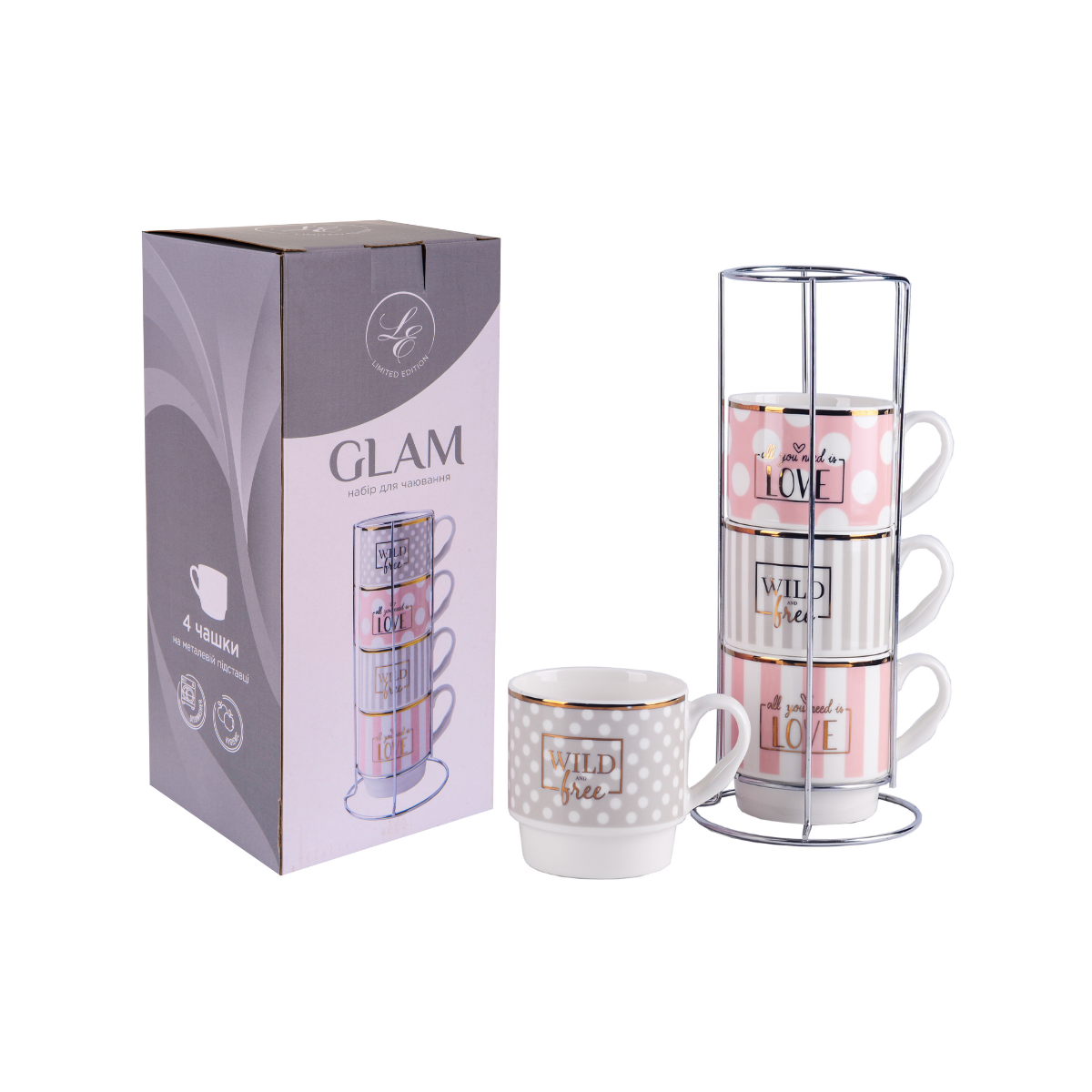 Набор чашек 4*345мл на подставке Glam B248-T2005