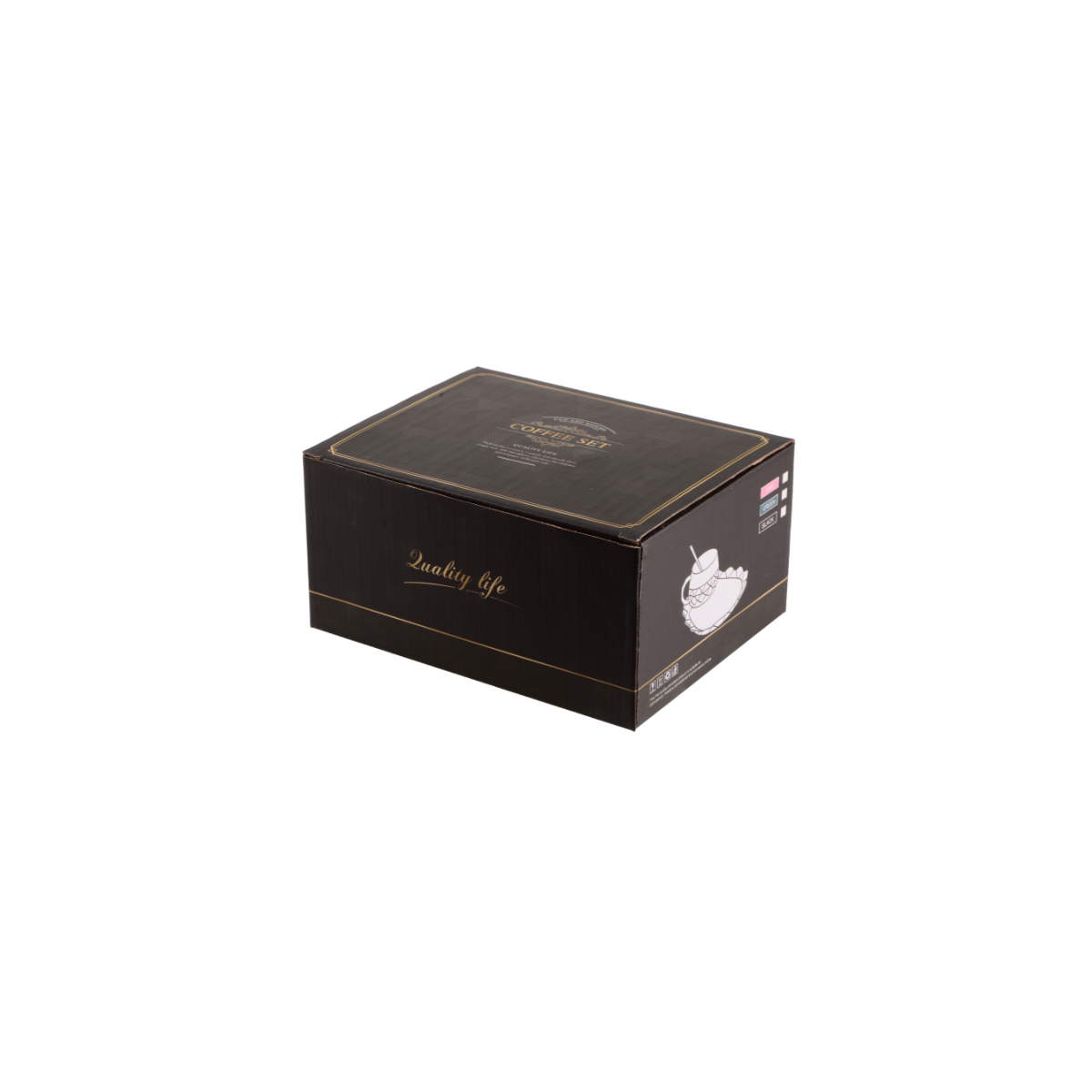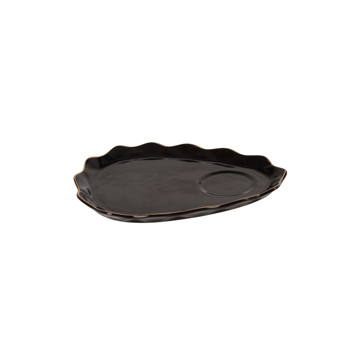 Чашка выполнена из качественного прочного фарфора, обладает гладкой поверхностью и стильным дизайном: глубокий чёрный цвет в сочетании с утончёнными золотыми деталями подчёркивает современный и изысканный стиль сервировки.