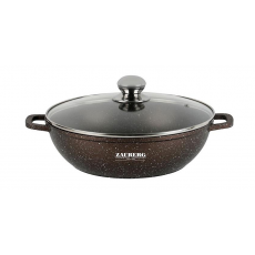 0528-CH Кастрюля мелкая 4,1л антипр.покрытие стк.крышка индукция Мрамор