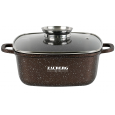 1224-CH Кастрюля квадратная 4,4л антипр.покрытие стк.крышка индукция Мрамор