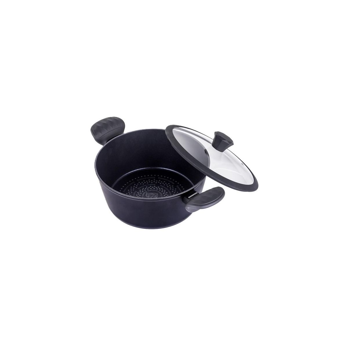 Внутреннее алмазное антипригарное покрытие гарантирует, что пища не пригорает даже без большого количества масла, а очистка посуды становится простой и быстрой. Турбо-индукционное дно подходит для всех типов плит, включая индукционные, что делает кастрюлю универсальной в использовании.
