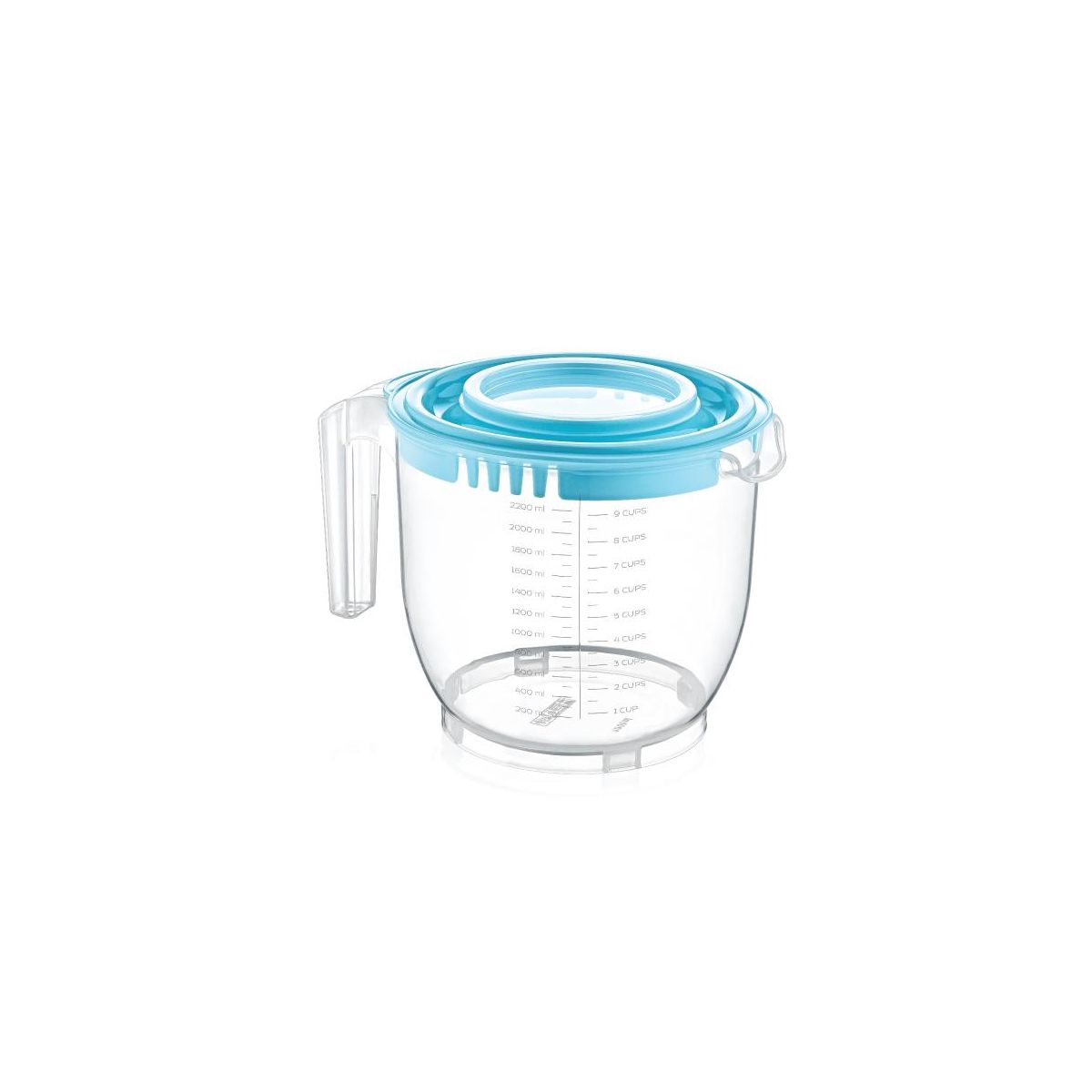 Миска-чаша для смешивания с крышкой- изготовлена из первичного пищевого высококачественного гипоаллергенного полипропилена Турецкого производства ТМ DUNY PLASTIK. Объем миски составляет 2200 мл. Очень прочная к механическим и химическим воздействиям, не впитывает и не имеет запахов. Очень легко и хорошо моется. Удобна в использовании, используется для замеса теста, крема, фарша др. Благодаря специальной форме в ней легче держать миксер и смешивать даже небольшое количество. Основание сделано из специального материала, который предотвращает скольжение, благодаря чему миска стабильно придерживается основания и не выскальзывает из рук. Можно мыть в посудомоечной машине. Данная продукция представлена в различных вариациях цвета. Товар сертифицирован международным стандартом качества для контакта с пищевыми продуктами ISO 9001, абсолютно безопасен при контакте с продуктами питания. Срок годности - неограничен.