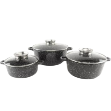 Каждая кастрюля оснащена антипригарным покрытием, благодаря которому еда не пригорает, а мытье посуды становится проще. Изготовлены из высококачественного материала с мраморной поверхностью, кастрюли отличаются не только стильным внешним видом, но и прочностью, устойчивостью к царапинам и долговечностью. Комплект дополнен стеклянными крышками, позволяющими следить за процессом приготовления, не поднимая крышку и сохраняя вкус и аромат блюд.