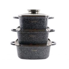 1220/22/24-SN Набор кастрюль квадратных 3-пр. 2,7л 3,5л 4,4л антипр.покрытие скл.крышка инд. Мрамор