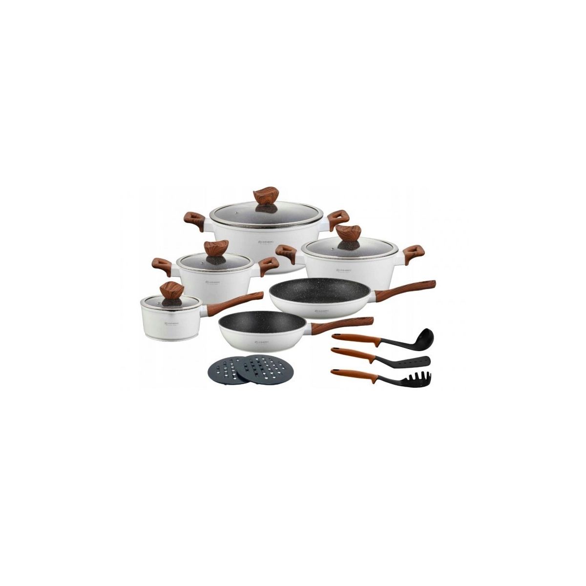 Набор посуды 15-пр. антипр.покрытие мрамор EB-5622