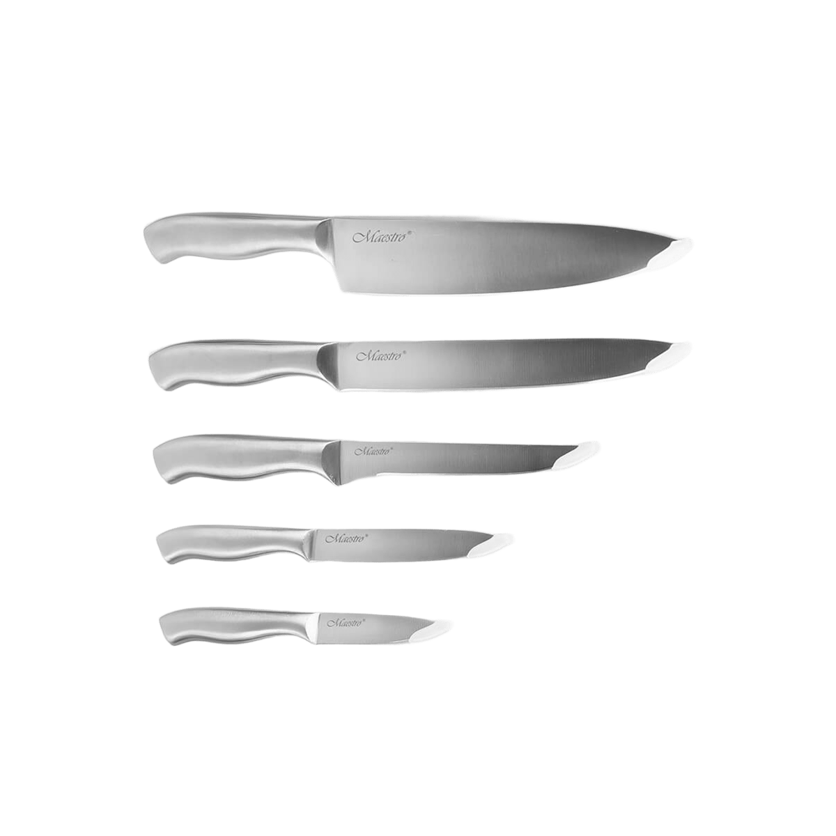 Набор ножей MR-1410 — это практичное и стильное решение для современной кухни. В комплект входят пять самых востребованных кухонных ножей и удобная акриловая подставка, которая обеспечивает компактное и безопасное хранение.