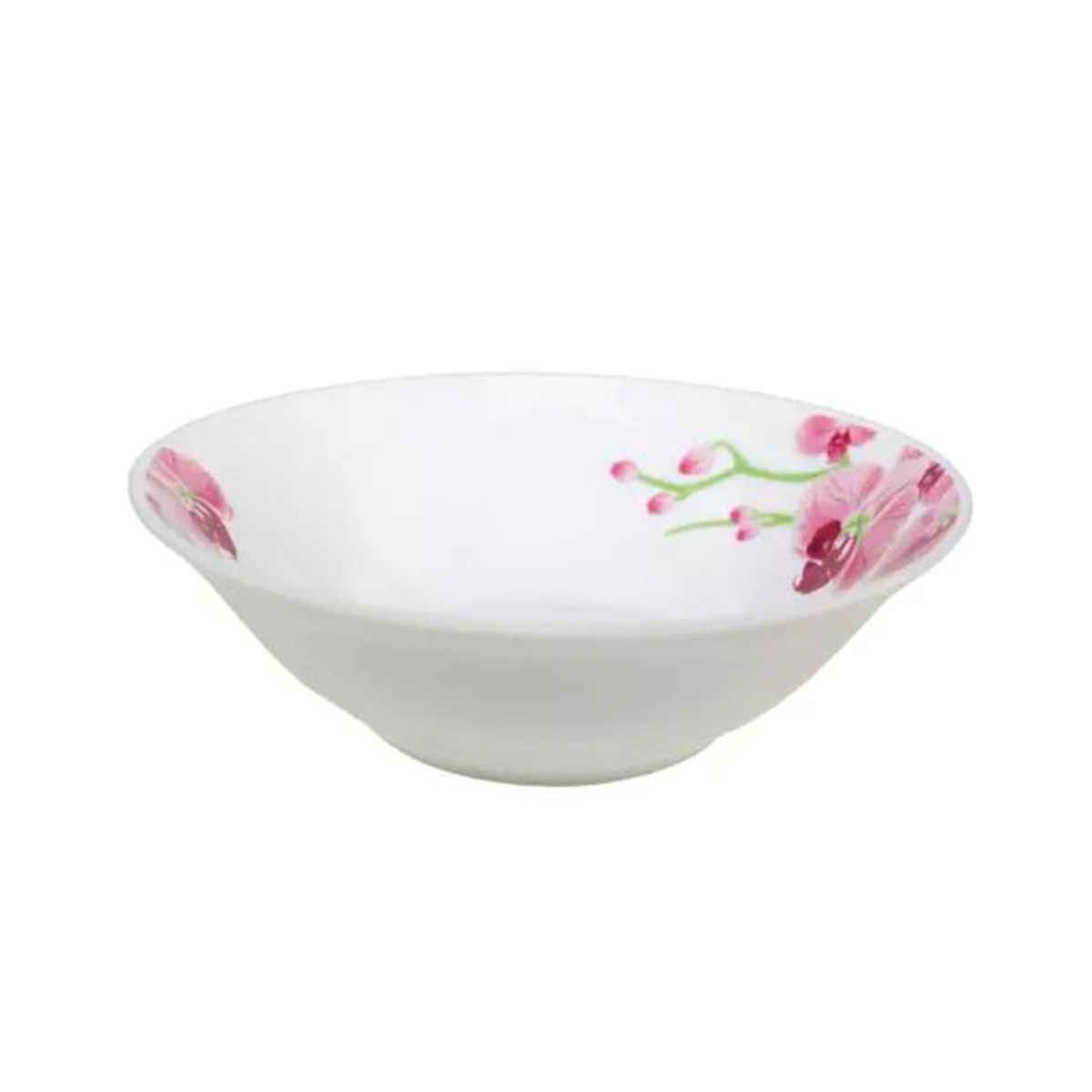 Салатник изготовлен из стеклокерамики, украшен рисунком.