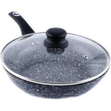 Покрытие сковороды представляет собой гранитную крошку. Образованная ей, антипригарная пленка на поверхности сковороды отличается высокой прочностью и долговечностью, устойчивостью к царапинам.