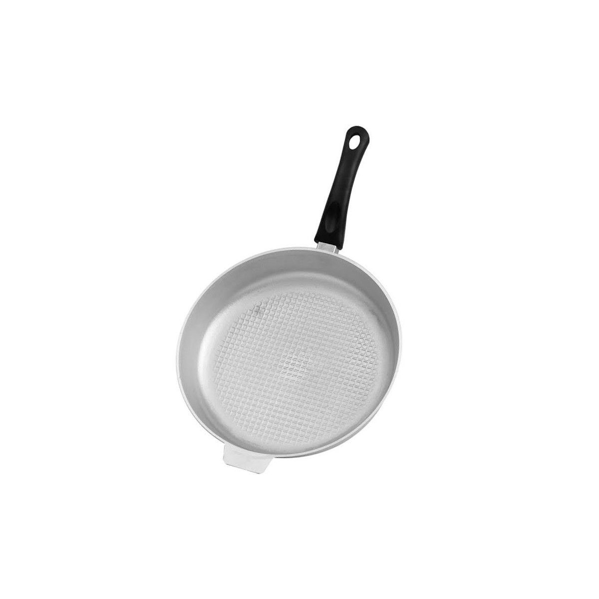 Литая алюминиевая сковорода глубиной 62 мм имеет рифленое дно, которое защищает продукты от прилипания.