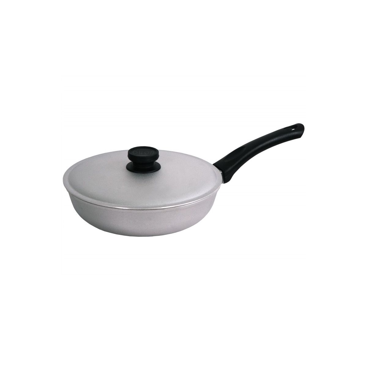 Сковорода укомплектована плотно прилегающей алюминиевой крышкой.