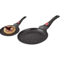 Эта сковорода разработана специально для приготовления блинов, оладий, яиц и других блюд с идеальным результатом. Литой корпус из алюминия обеспечивает быстрый и равномерный нагрев, а высококачественное мраморное антипригарное покрытие позволяет готовить с минимальным количеством масла и легко очищать поверхность после использования.