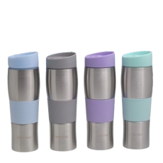 Термокружка 480мл из нерж.стали с TPR-вставкой серый ментол лиловый голубой 2161