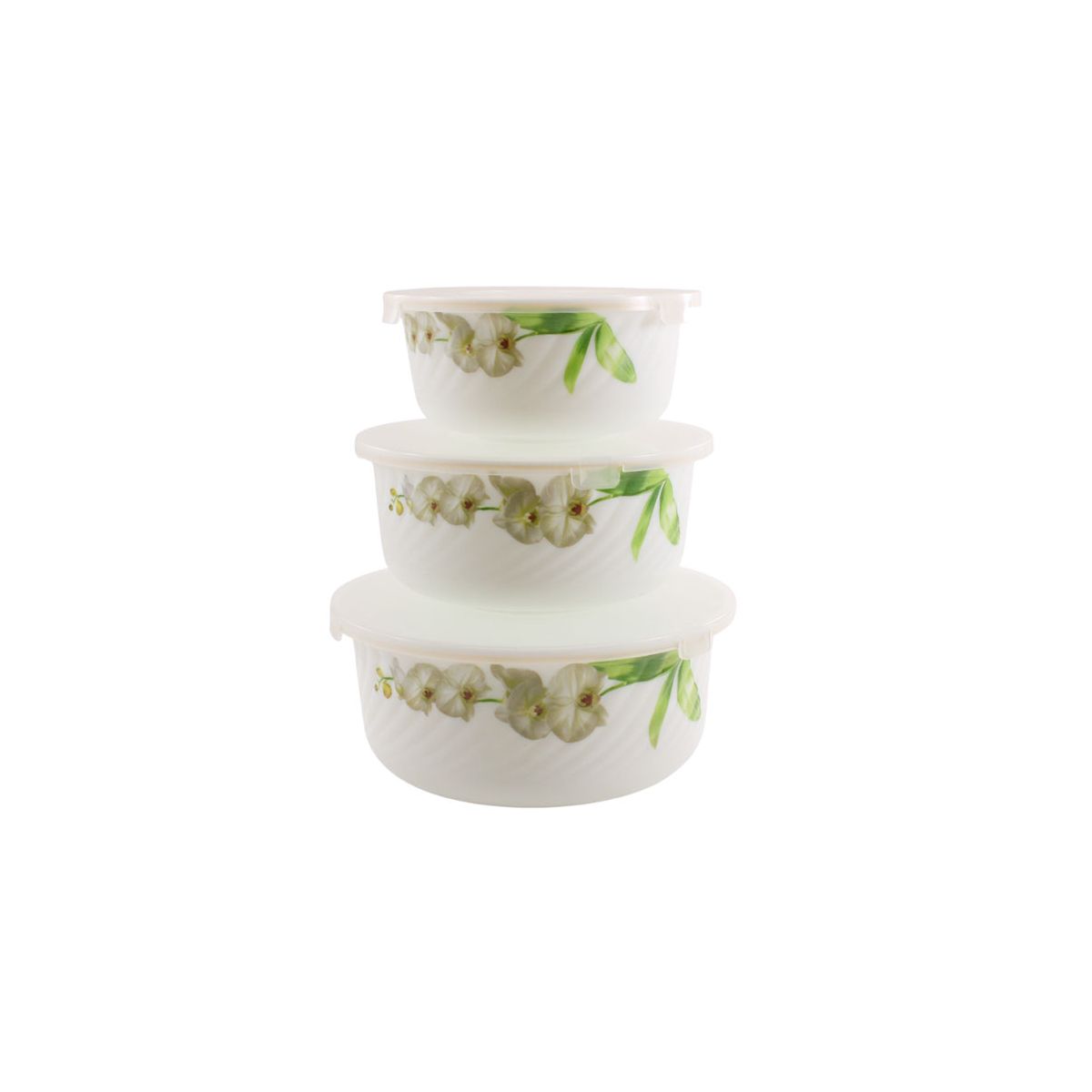 Біла орхідея Набір салатників 3-пр. 14*16*19см з кришкою склокераміка BB 408