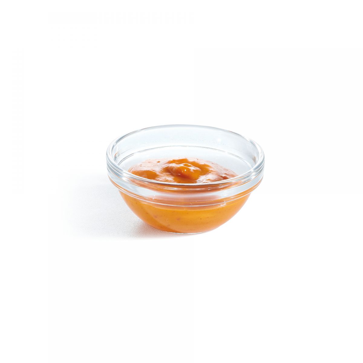 Компактна салатниця діаметром 6 см виготовлена з високоякісного прозорого скла. Завдяки лаконічному дизайну та універсальній формі підходить для подачі соусів, закусок, спецій, десертів або невеликих порцій салатів.