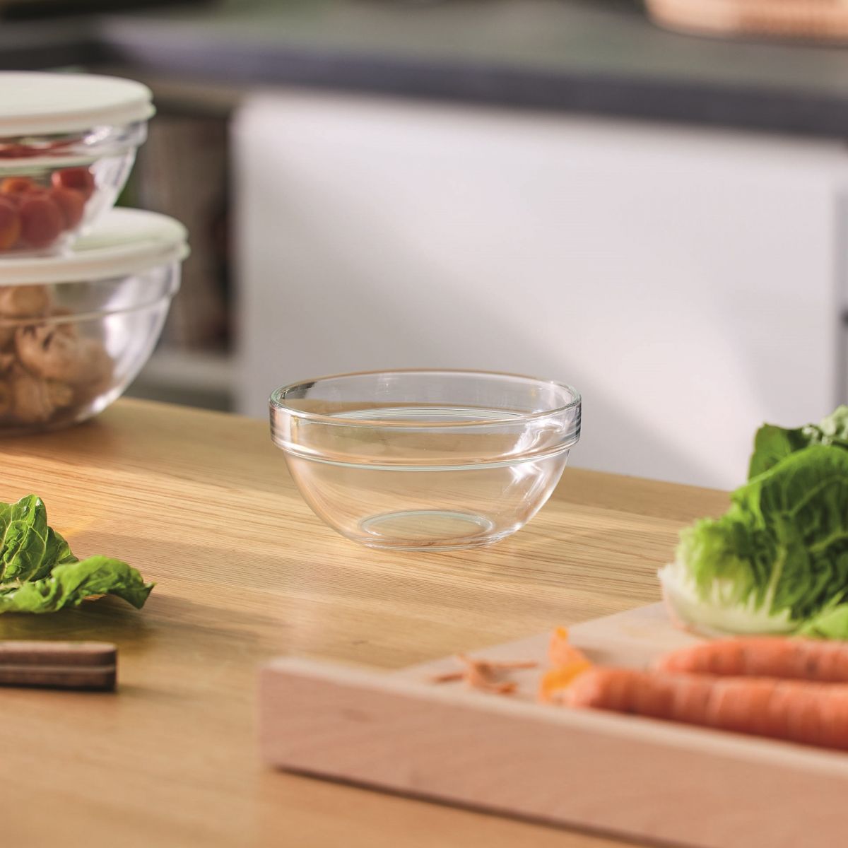 Салатниця має круглу форму та оптимальний діаметр 14 см, що робить її зручною для подачі салатів, закусок, десертів і фруктів. Завдяки продуманій конструкції серії Empilable вироби легко складаються один в один, економлячи місце на кухні.