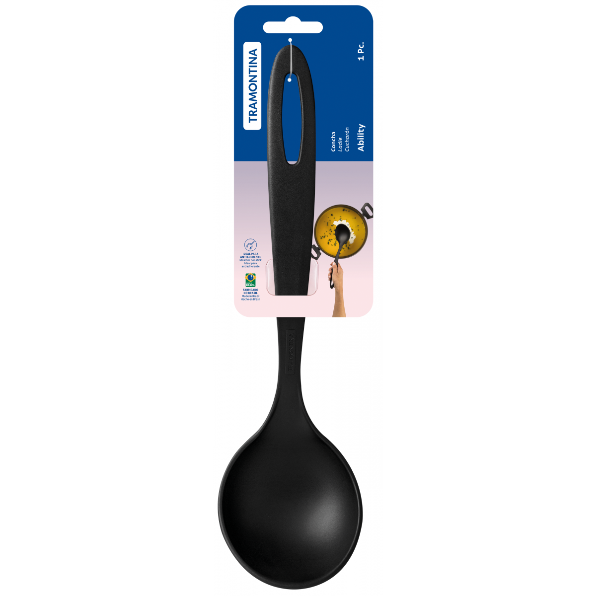 Ополоник TRAMONTINA Ability 25157/100 — зручний кухонний аксесуар для подачі перших страв, соусів та рідких страв. Виготовлений із міцного термостійкого нейлону, який витримує температуру до 180 °C та є безпечним для антипригарного посуду, не пошкоджуючи його поверхню.