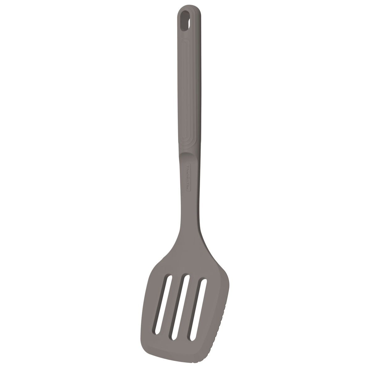 Робоча частина виготовлена з термостійкого силікону, який витримує температуру до 210 °C і не пошкоджує антипригарне покриття посуду. Завдяки прорізам зайвий жир або соус легко стікає, що робить приготування більш акуратним.