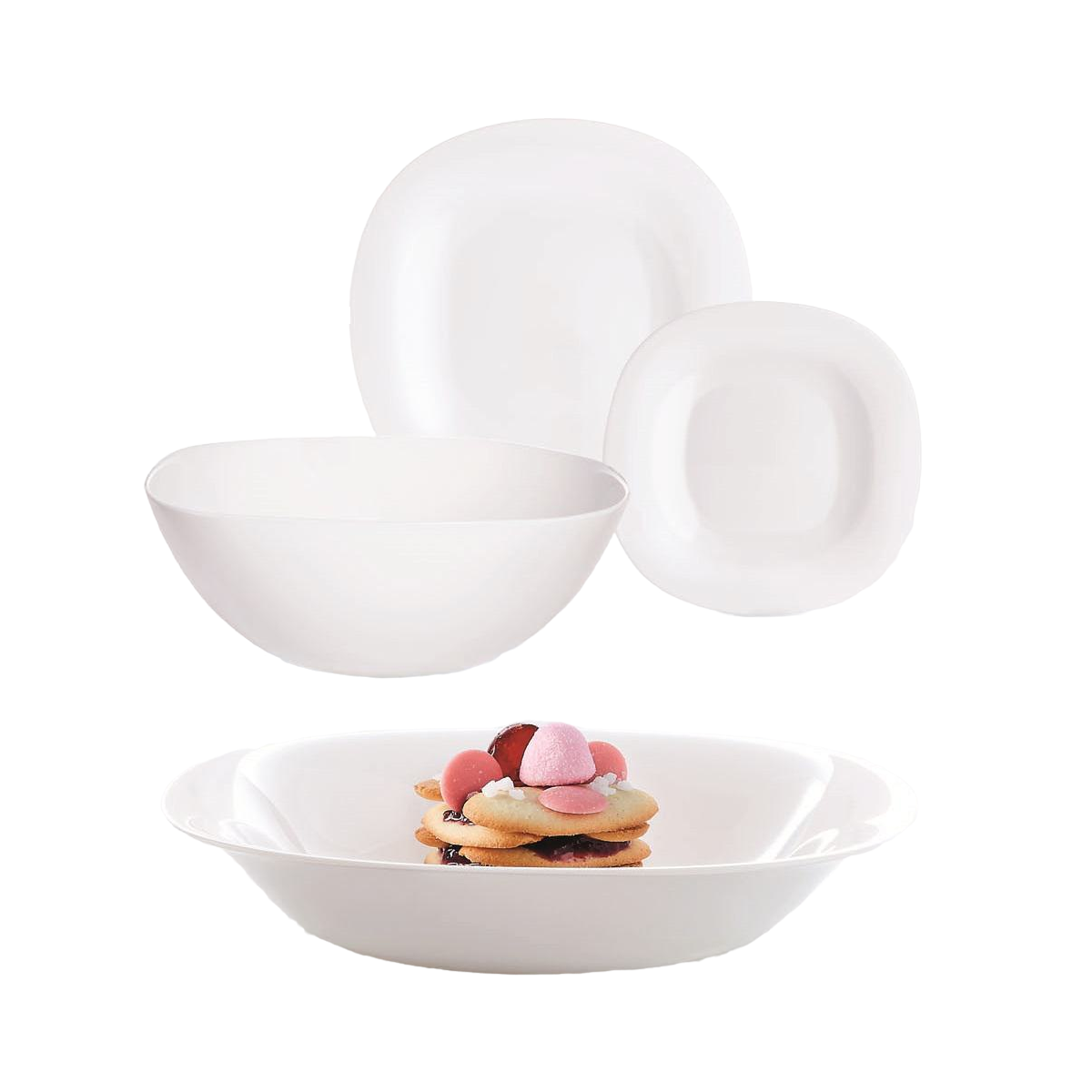 Класичний білий колір і сучасна квадратна форма з плавними лініями надають посуду елегантного вигляду та дозволяють легко поєднувати його з будь-яким інтер’єром кухні чи їдальні. Набір розрахований на 6 персон і містить усе необхідне для сервірування.