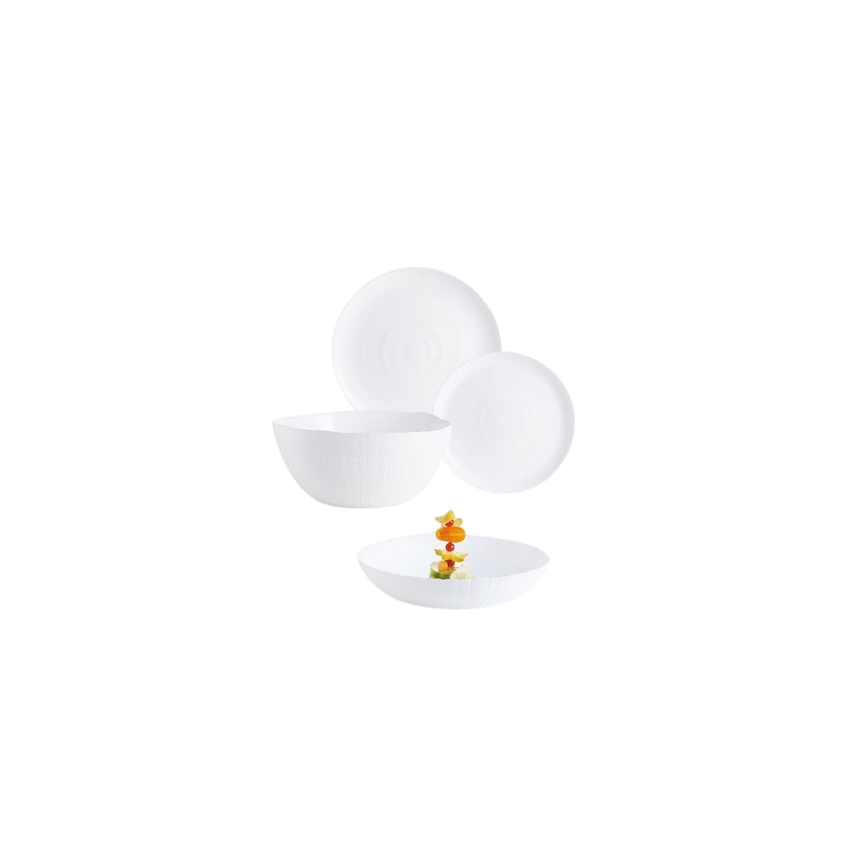 Столовий сервіз Luminarc Ammonite White — це елегантний набір посуду на 6 персон, виготовлений із міцного загартованого скла. Дизайн серії Ammonite натхненний природними формами та нагадує плавні лінії морської мушлі, що надає сервізу сучасного та витонченого вигляду.